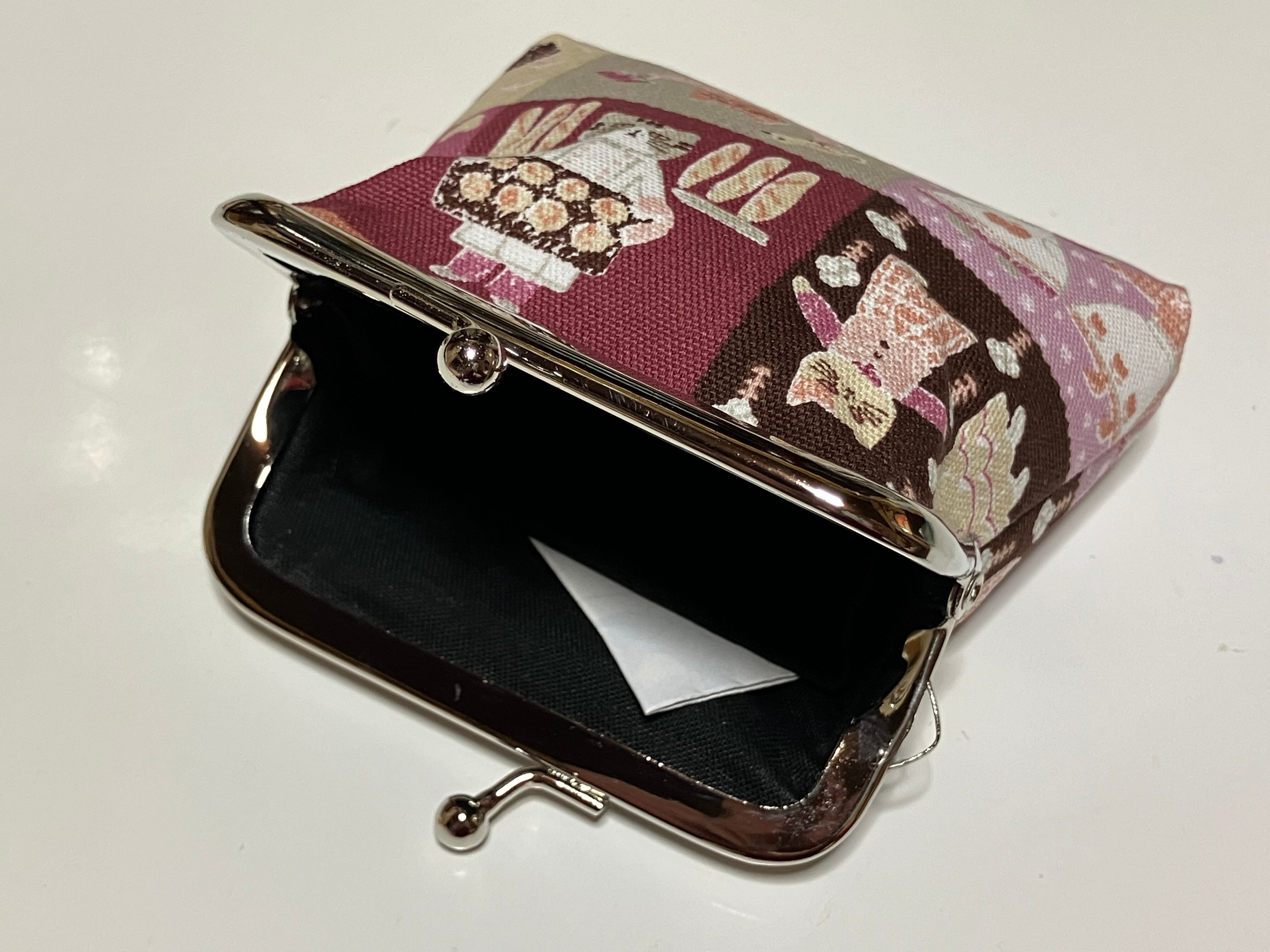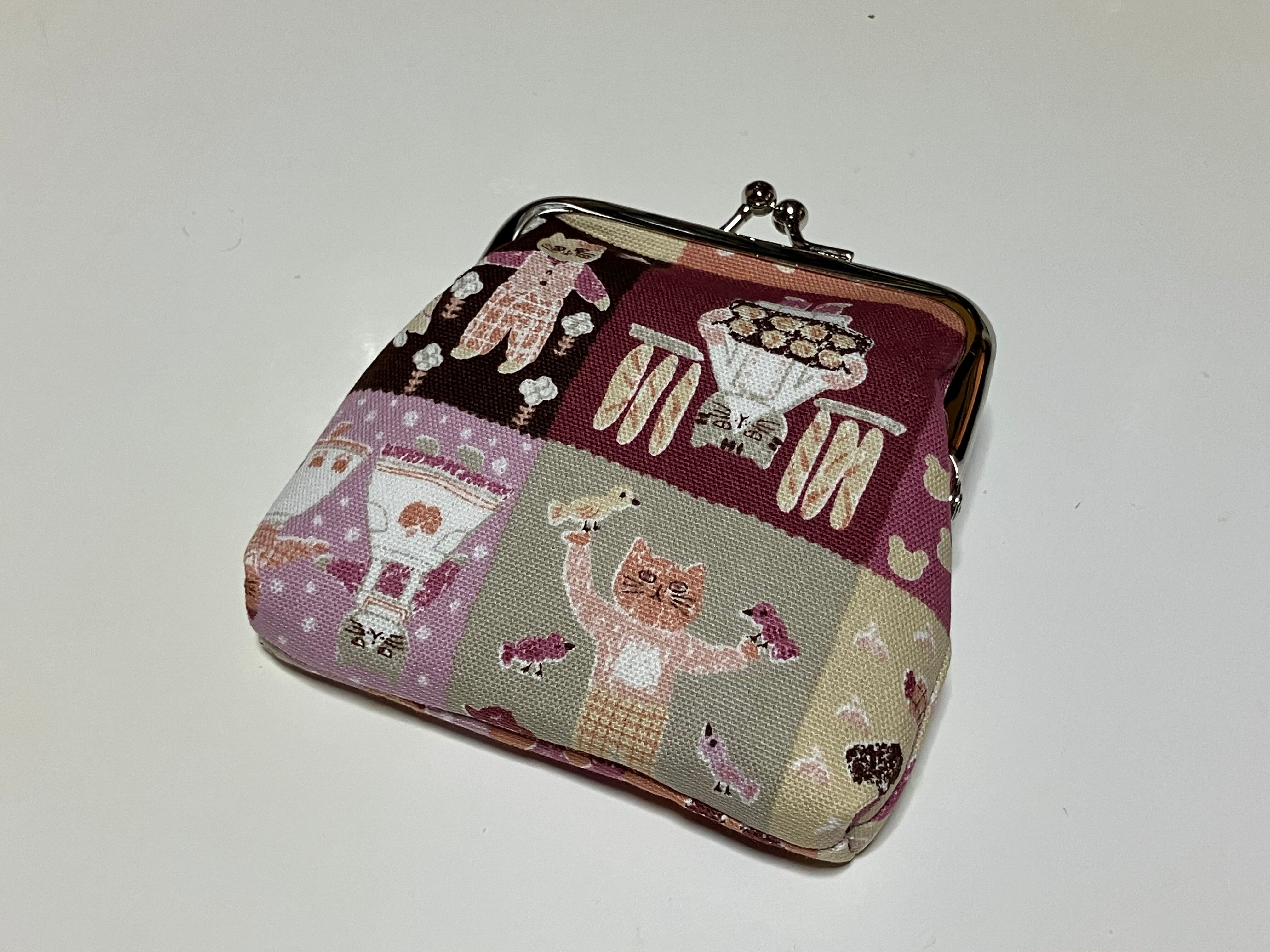 小銭入れやお薬、小物入れにオススメの四角の可愛いカタチのがま口です。