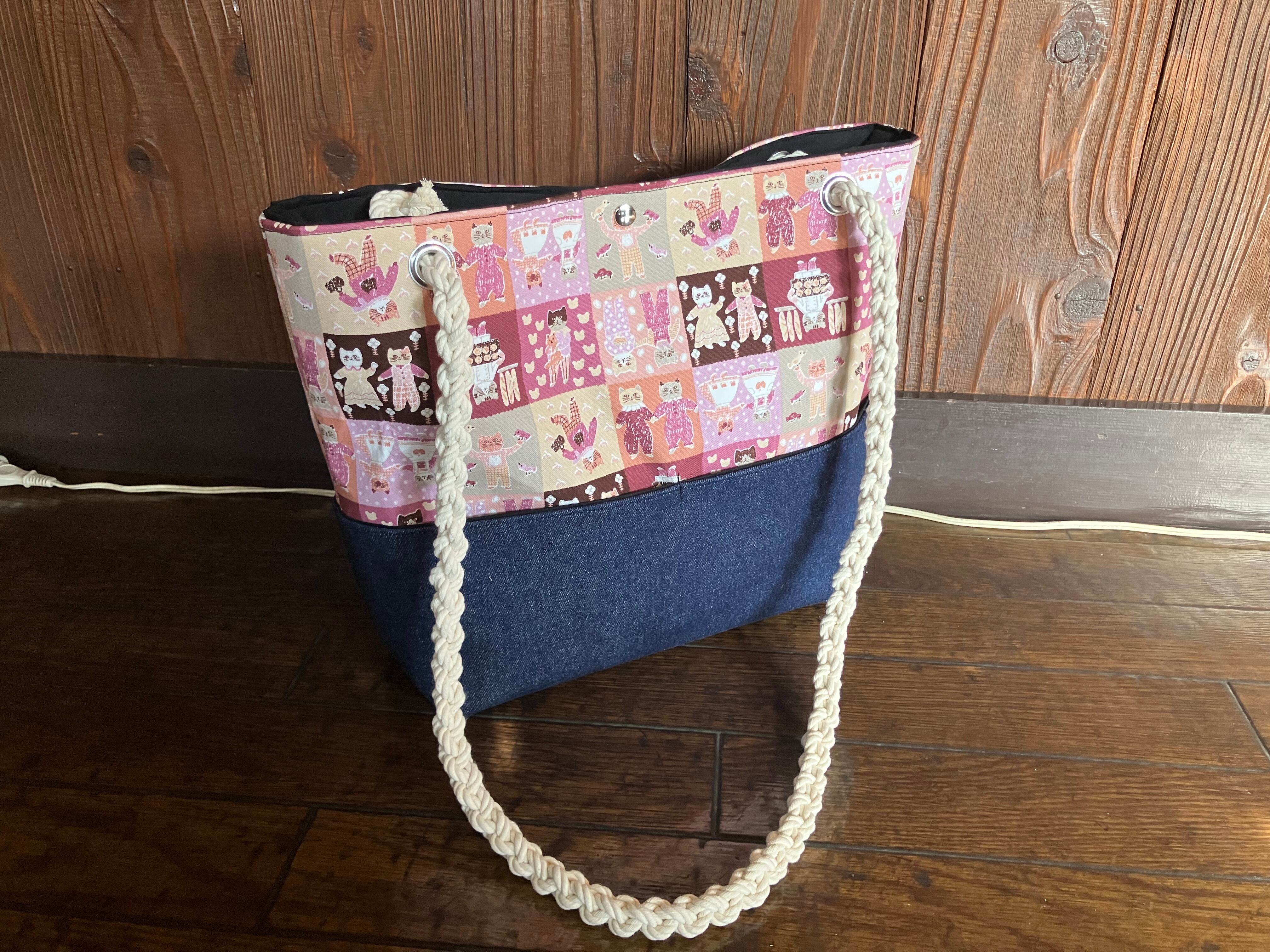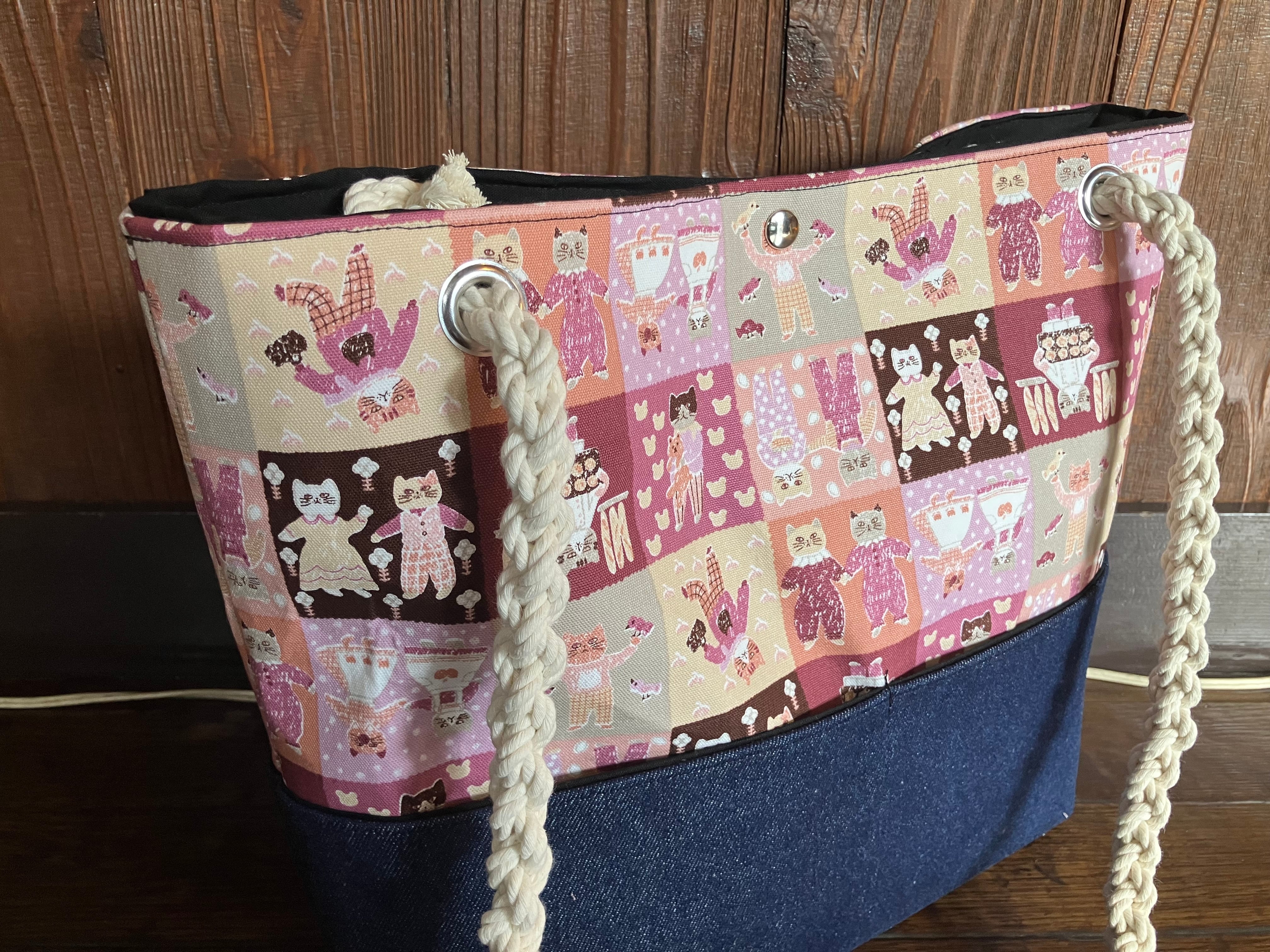 ピンクが可愛いネコ柄トートバッグです。