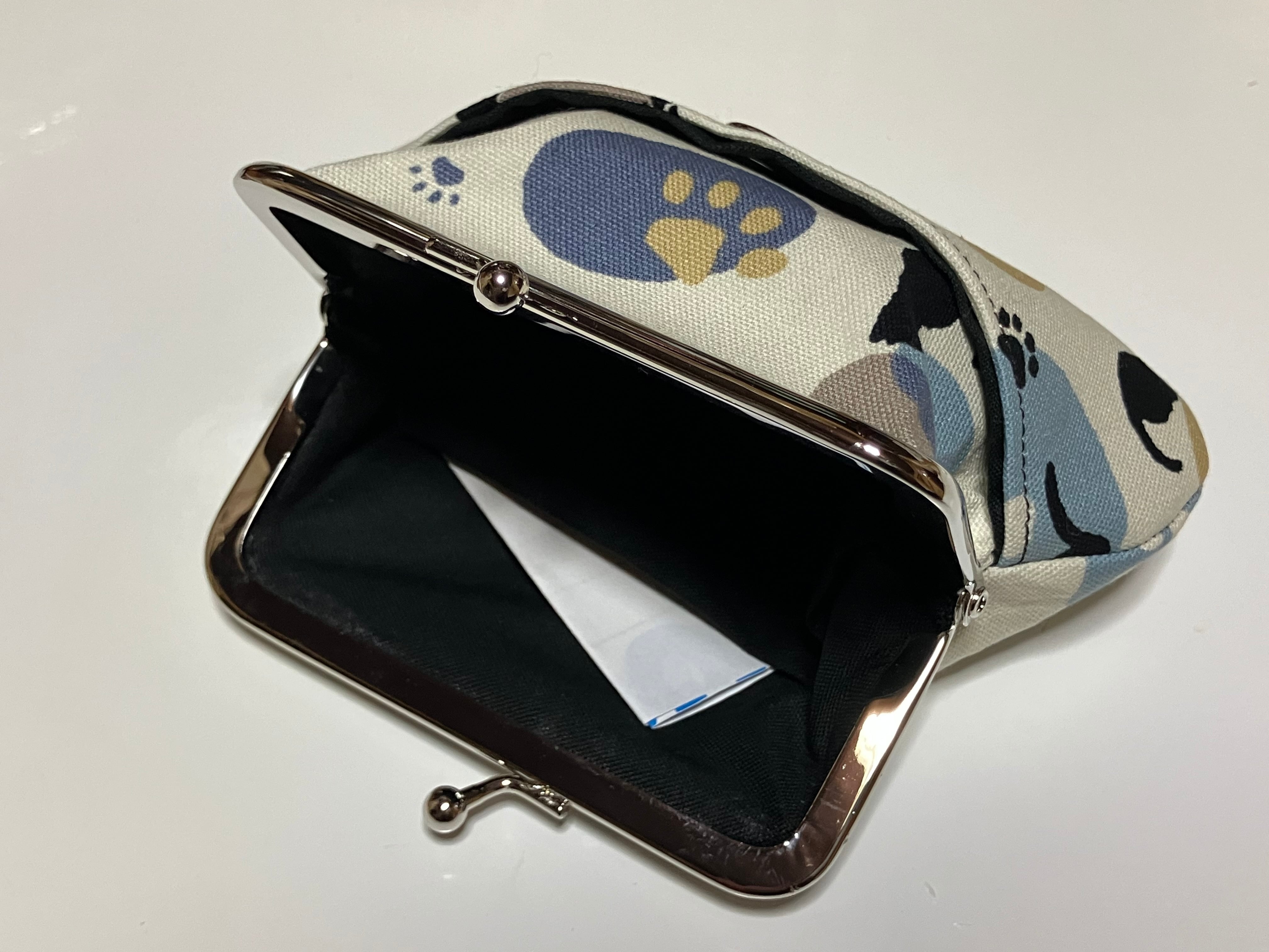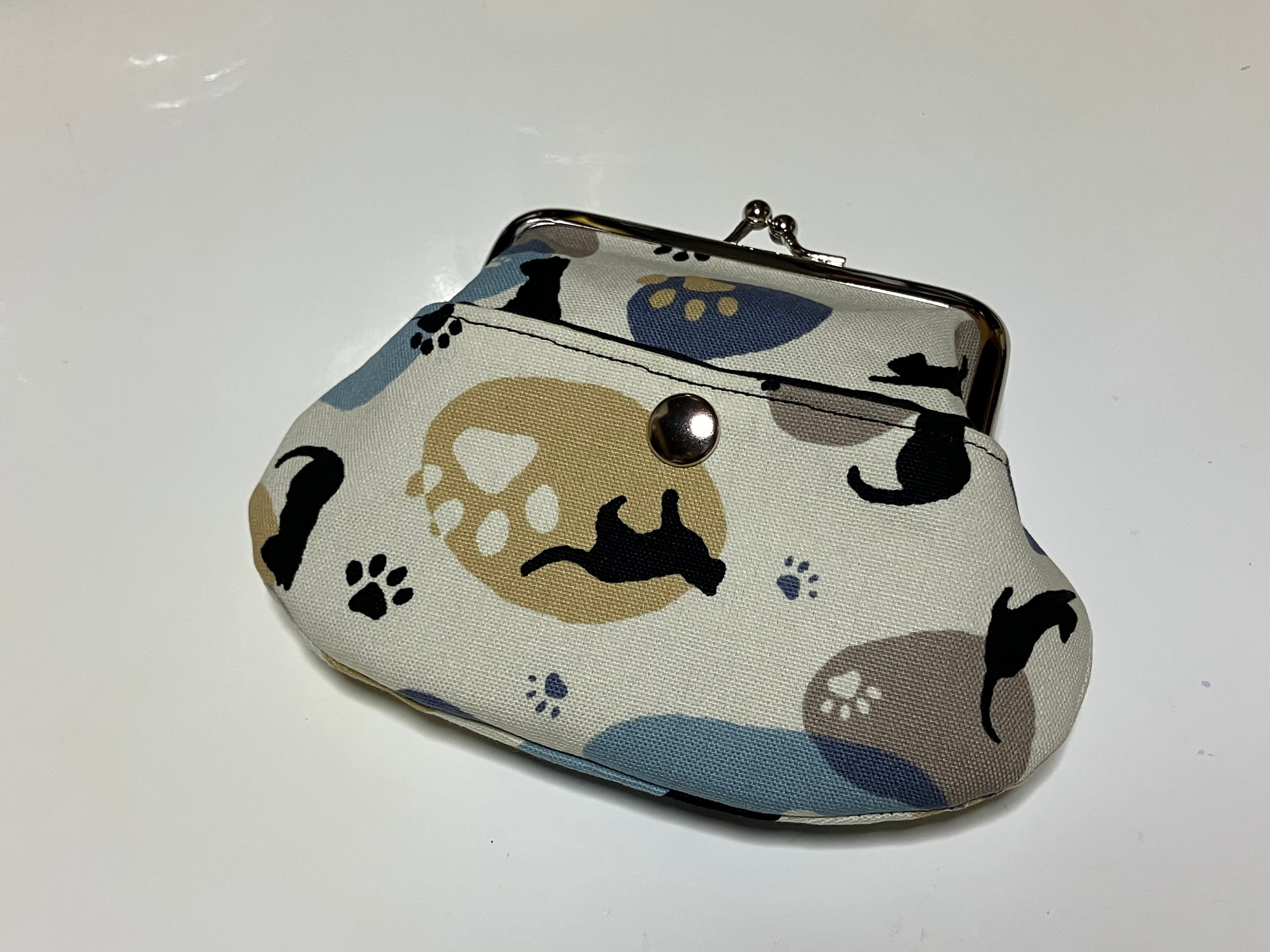 カードが入るサイズの可愛いネコのがま口サイフです。