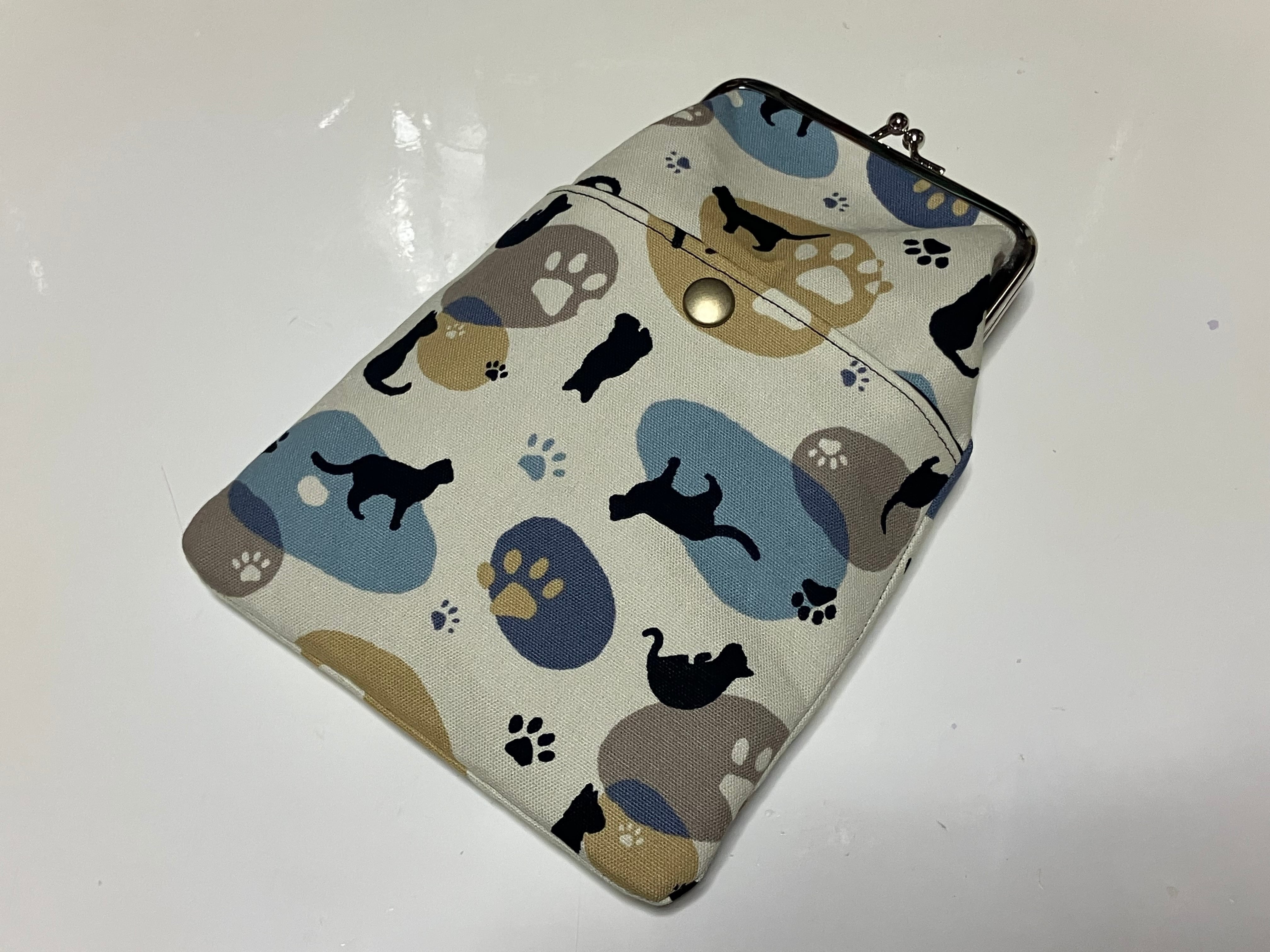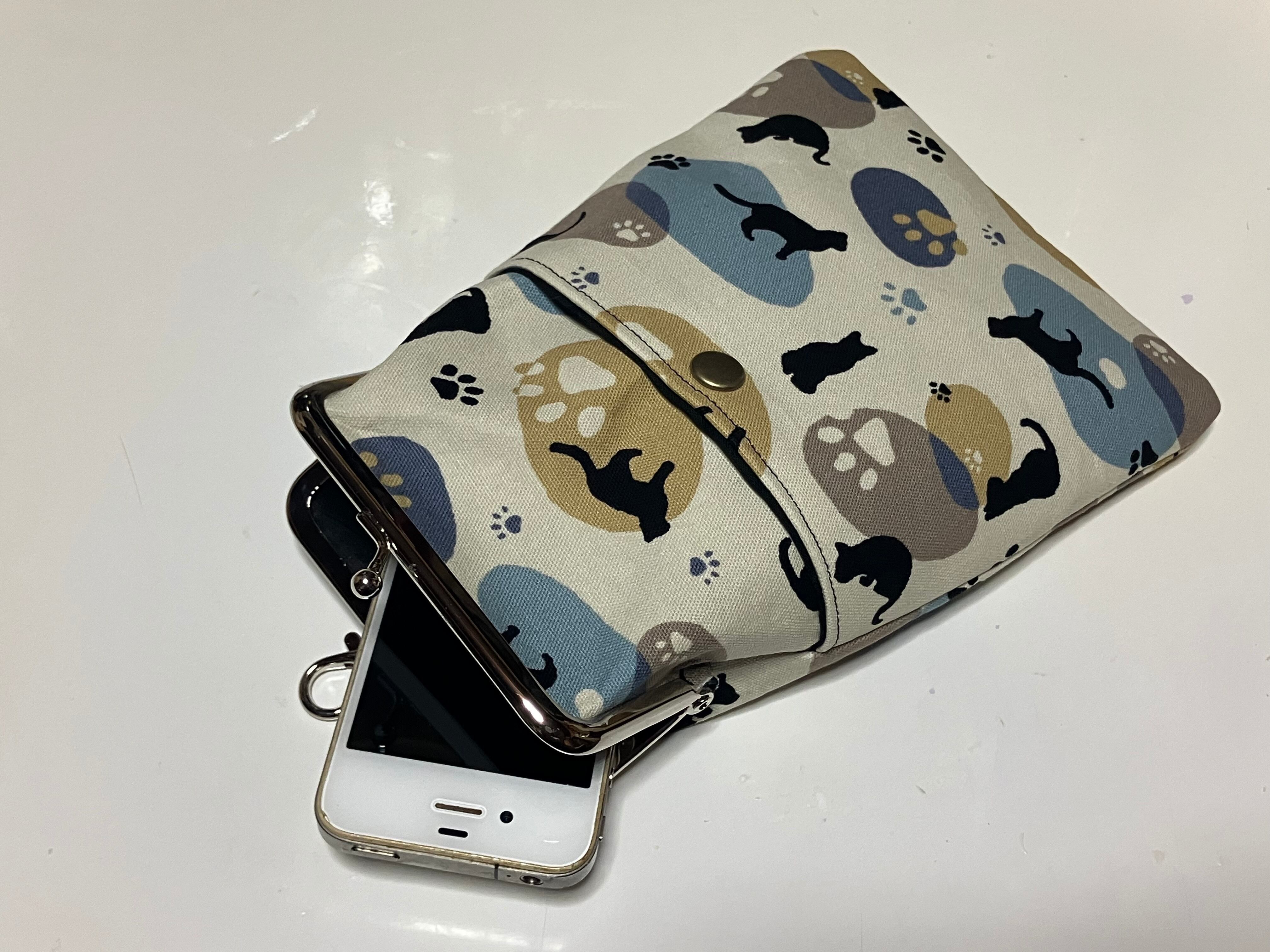 3wayがま口携帯ポーチL(ネコナチュラル)