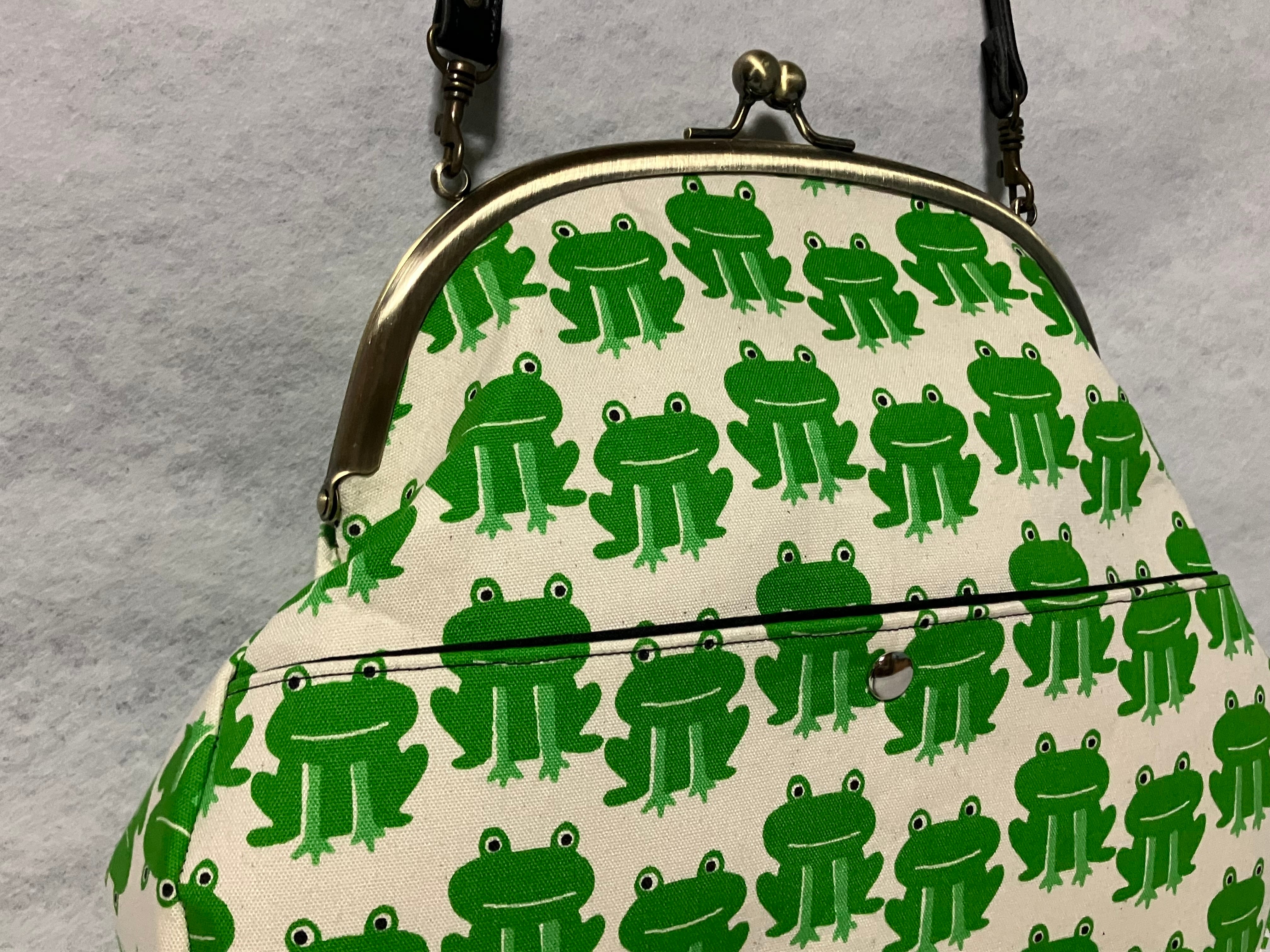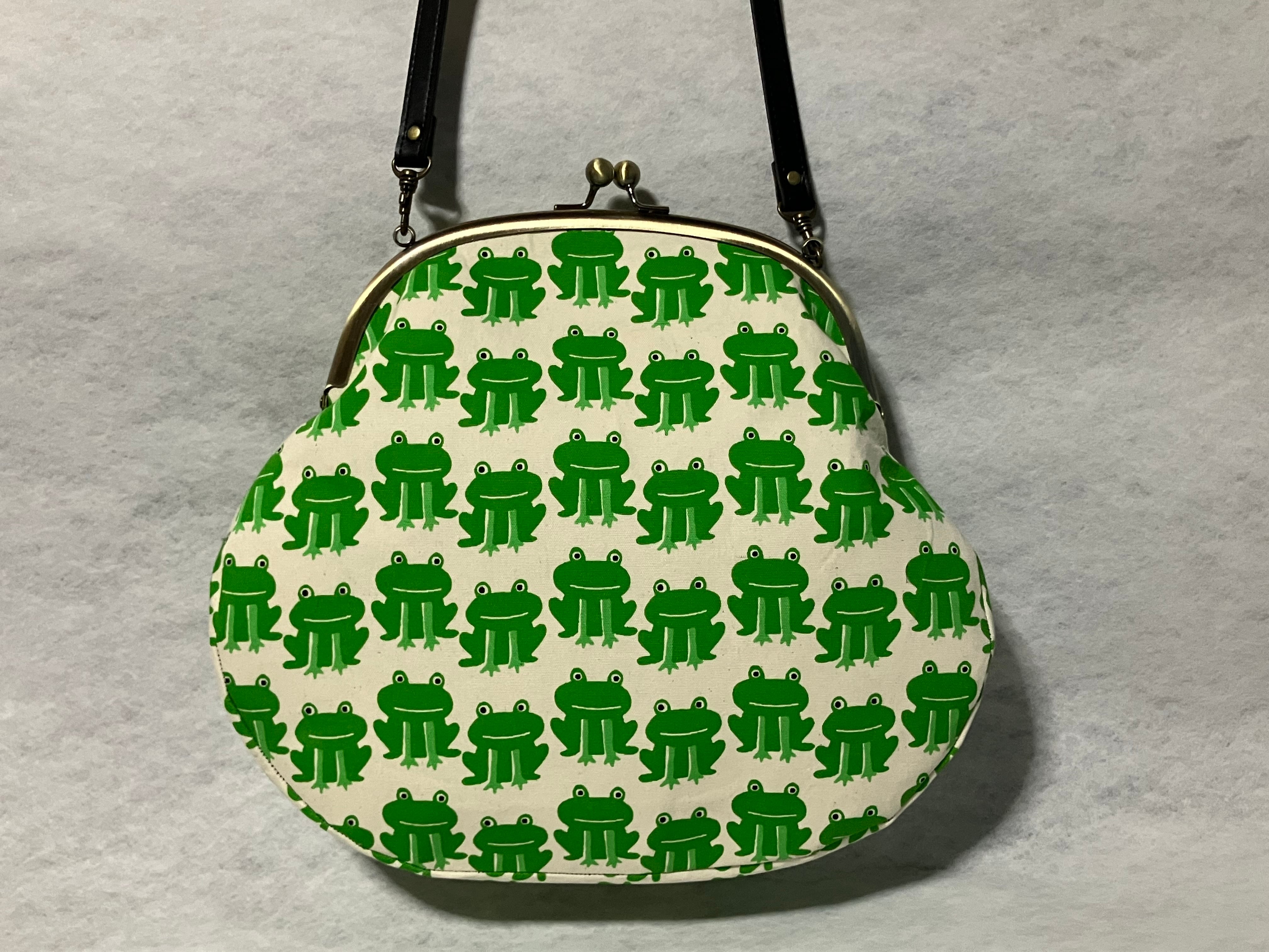 お出かけが楽しくなるマチが付いてたくさん入る可愛いがま口バッグです