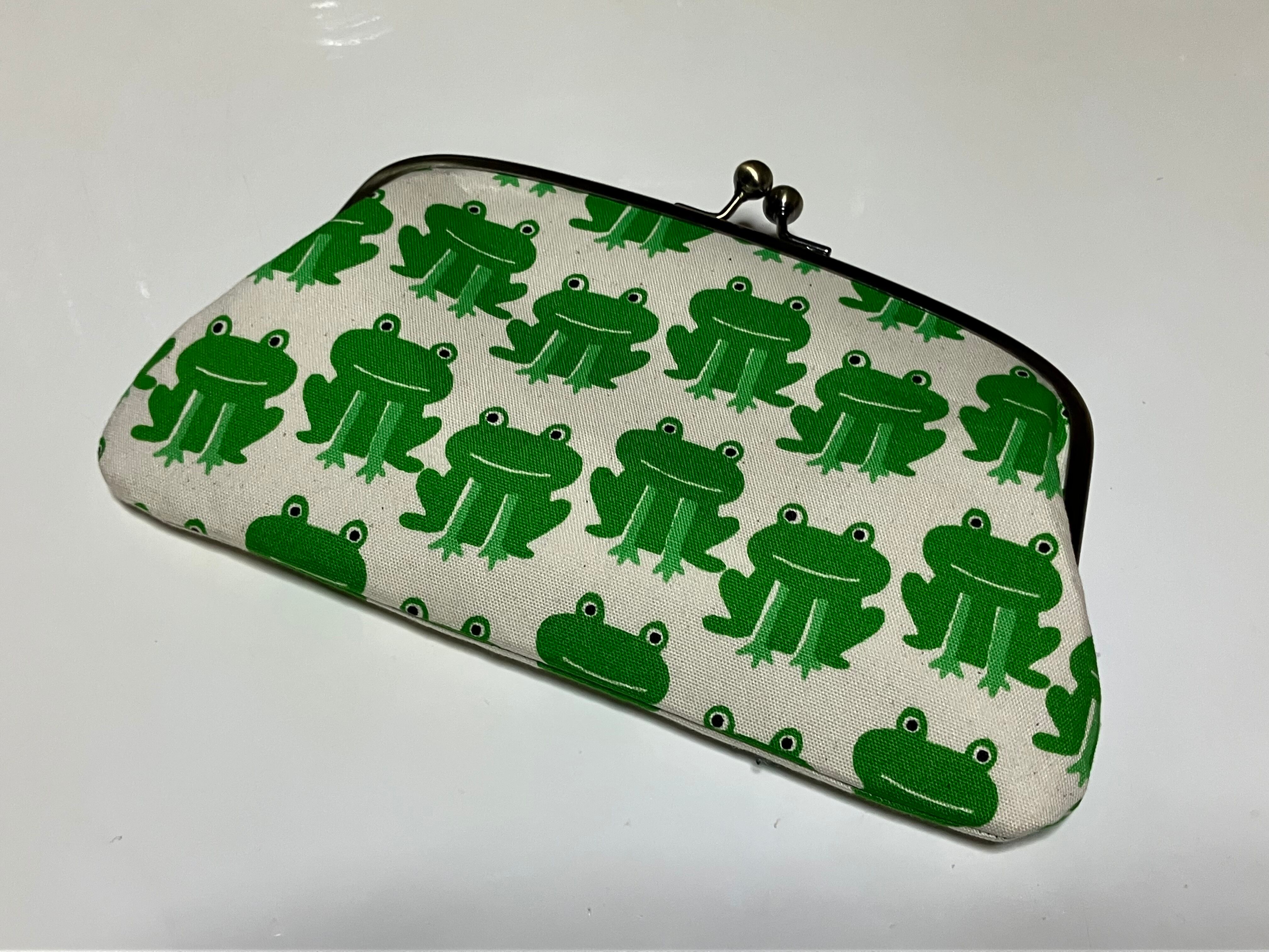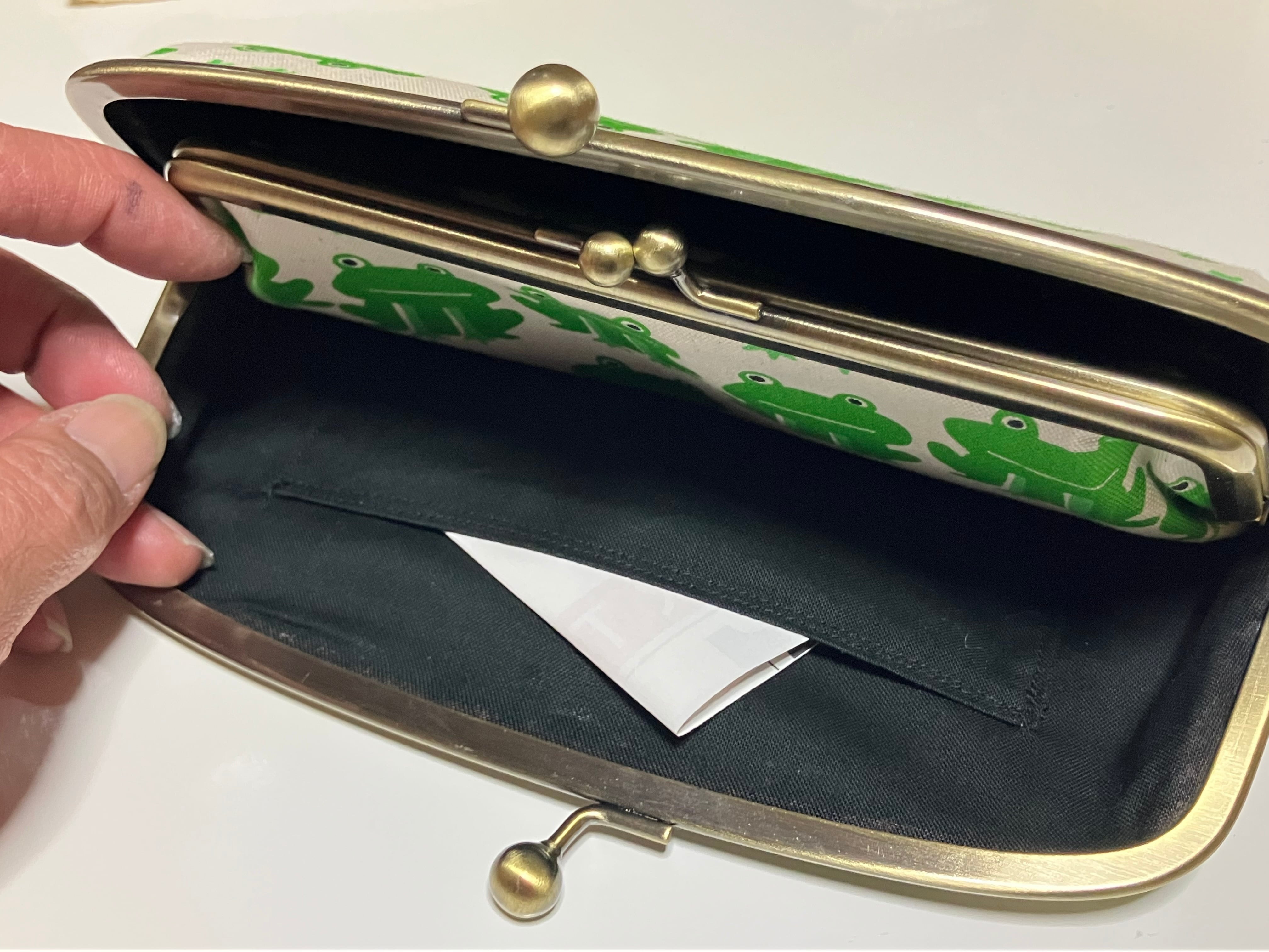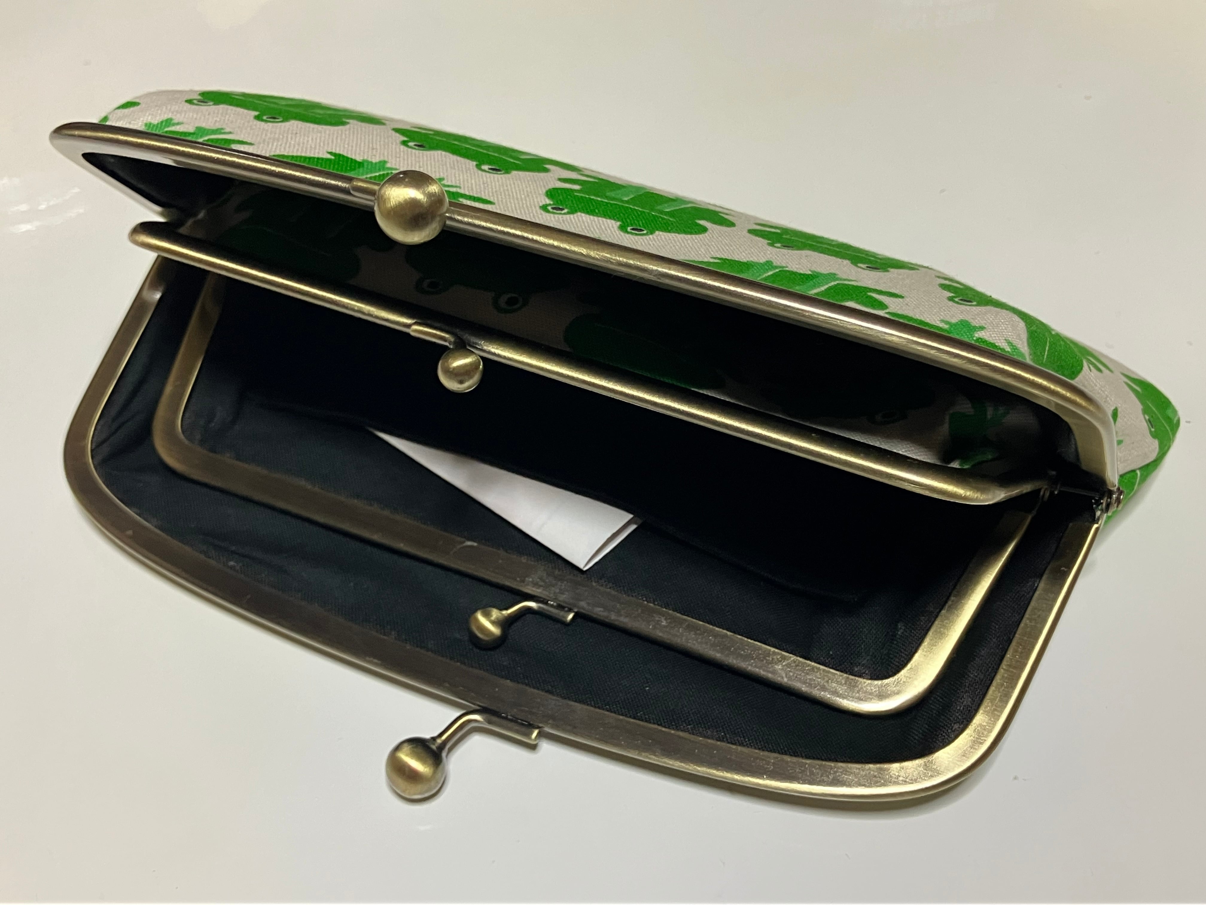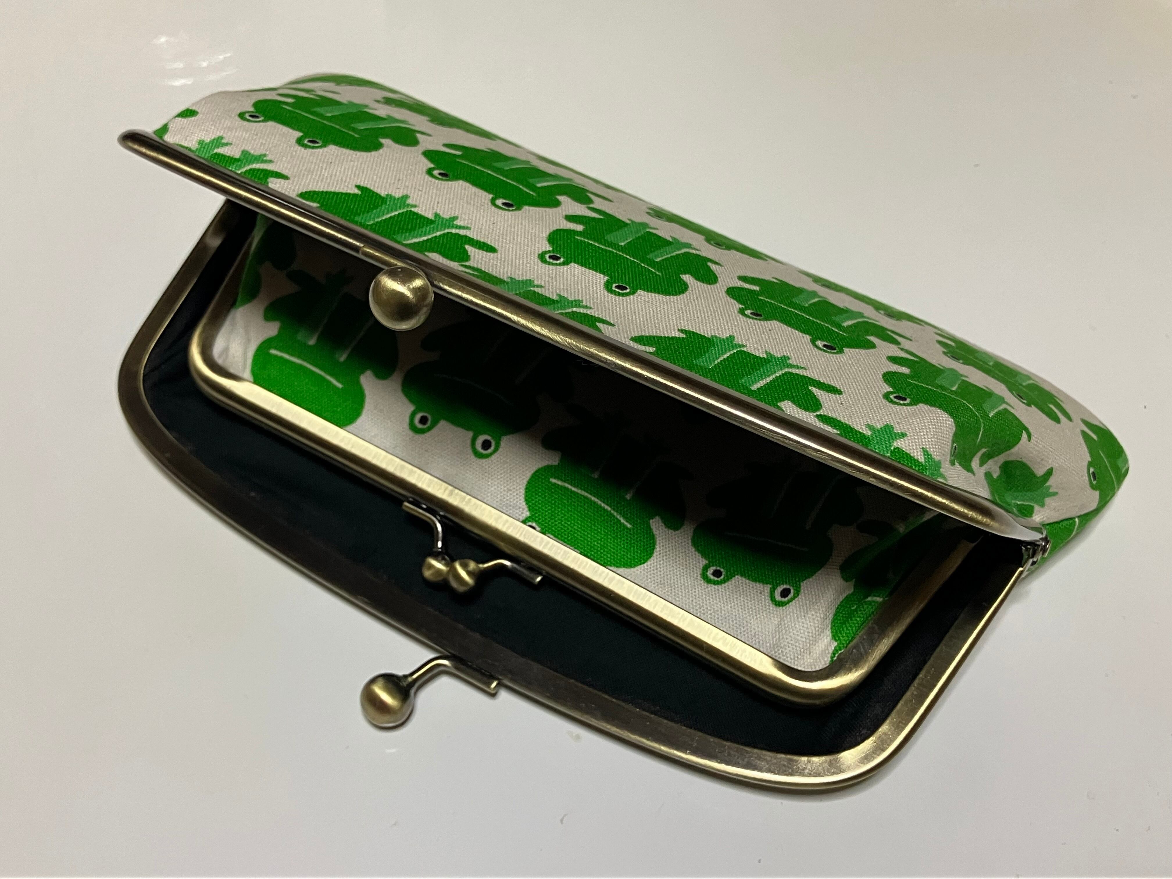 通帳やスマホも入る大きなサイズの親子がま口サイフです。