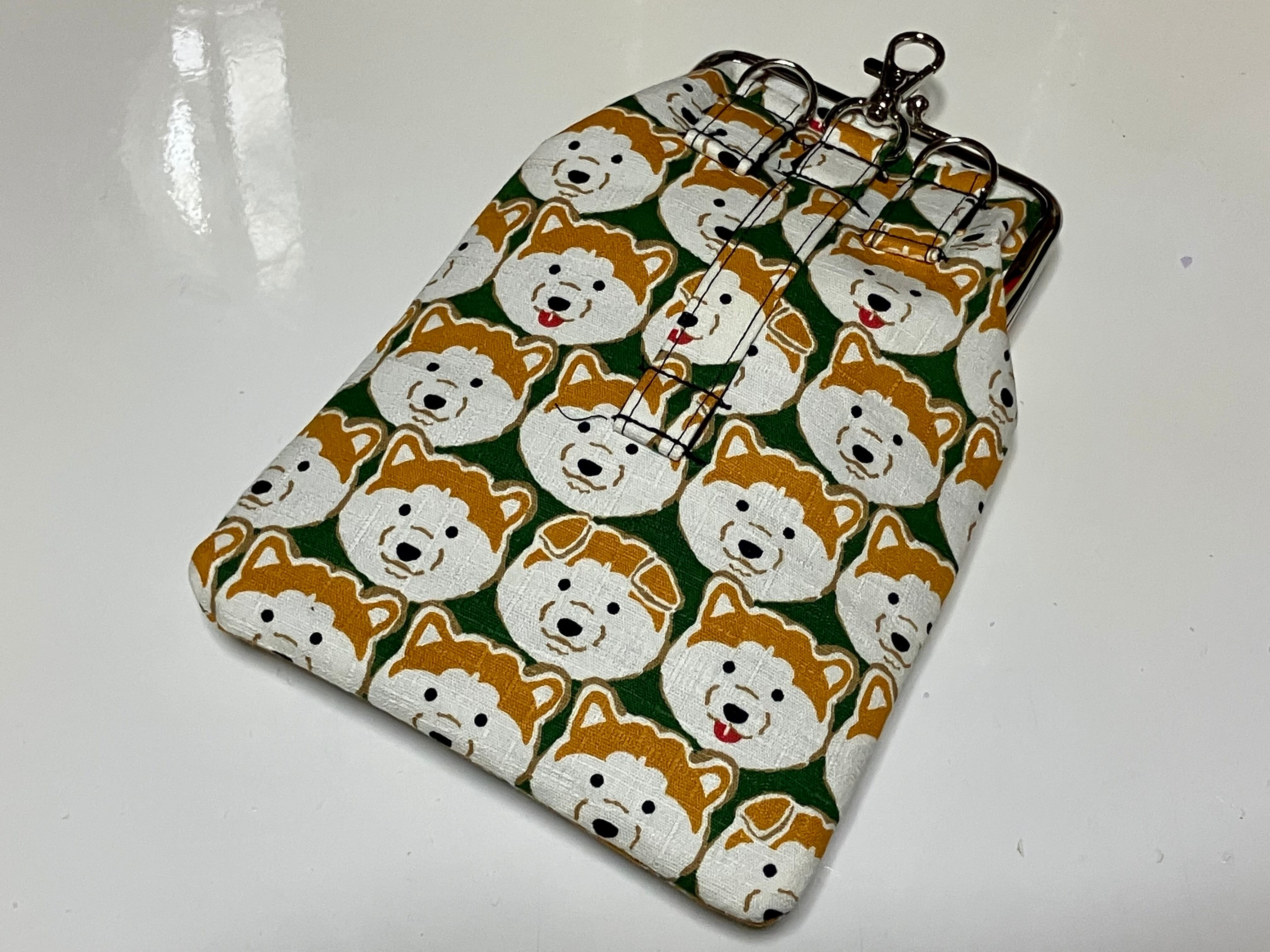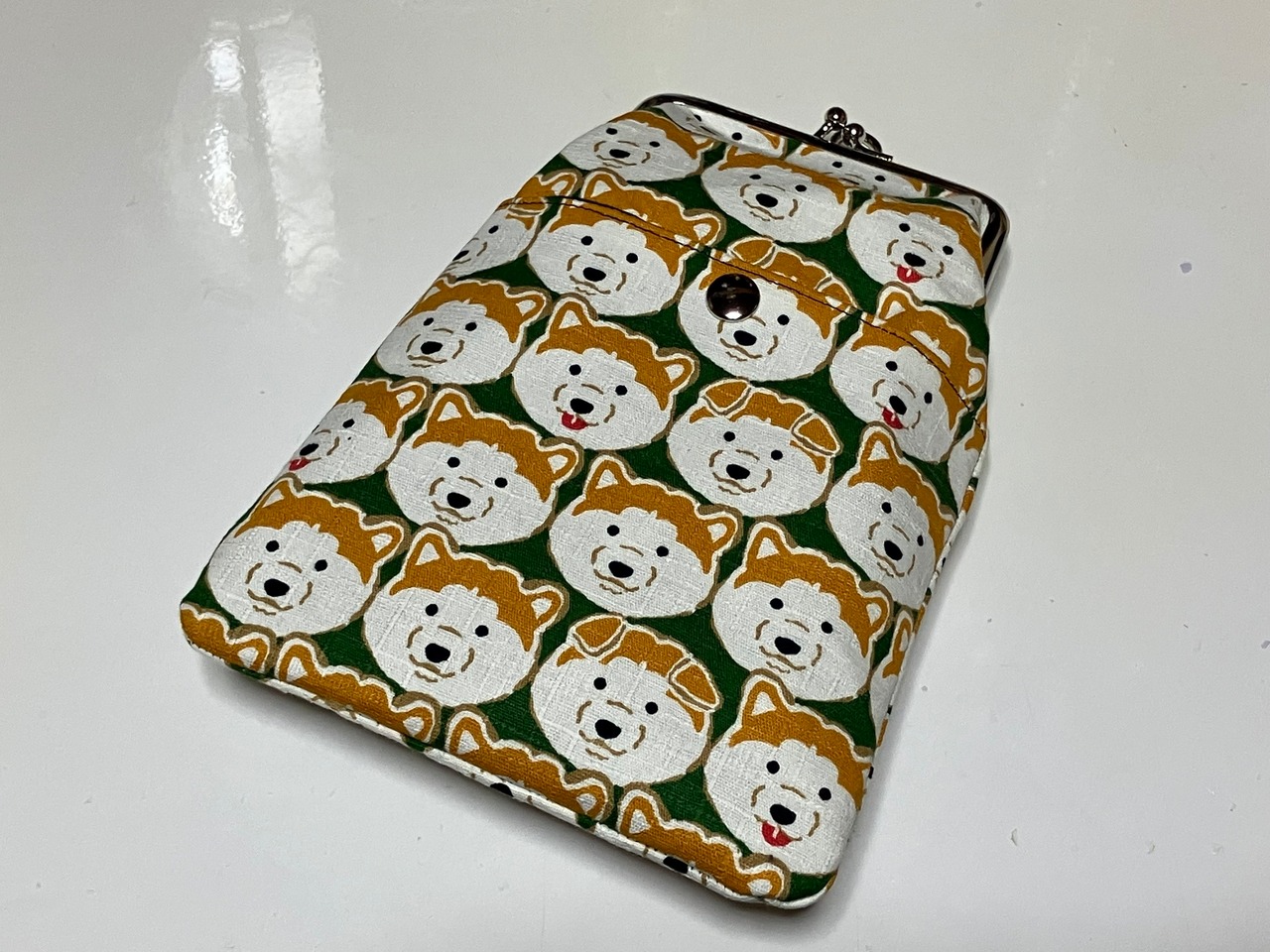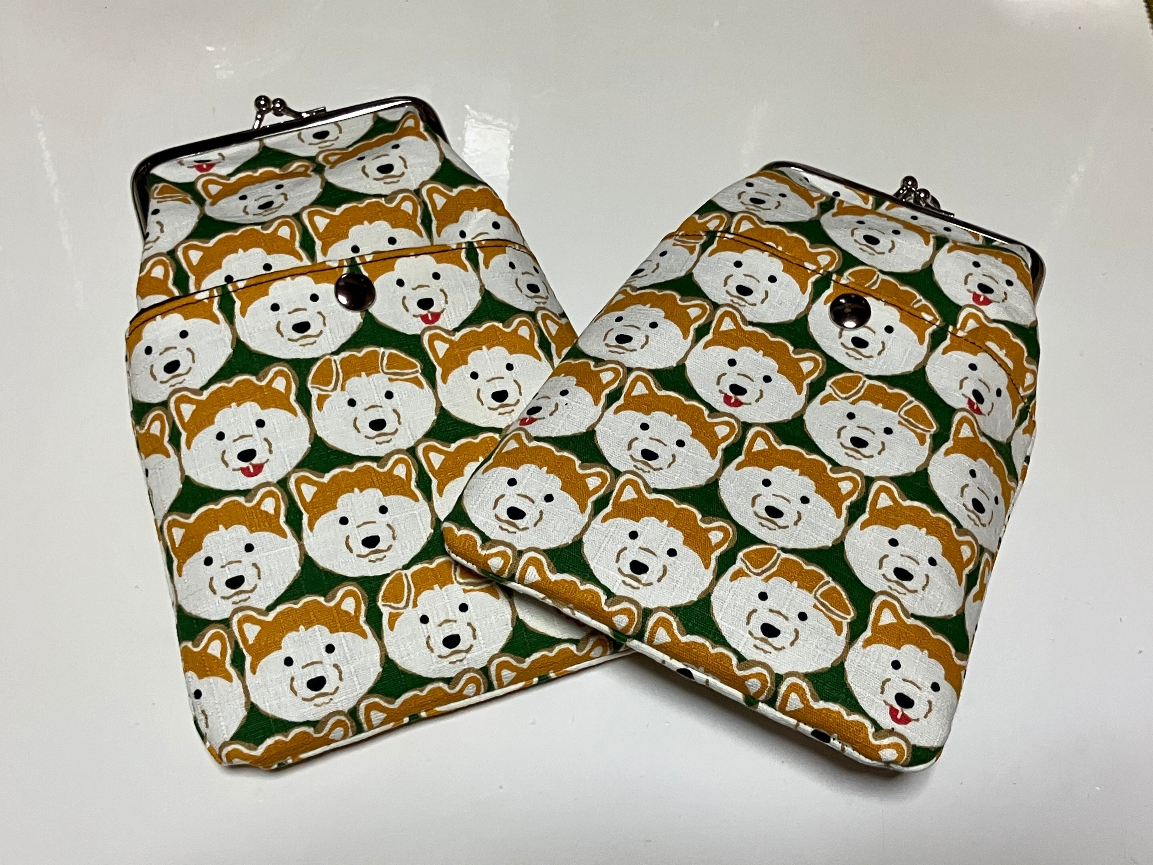 3wayがま口携帯ポーチL(柴犬グリーン)