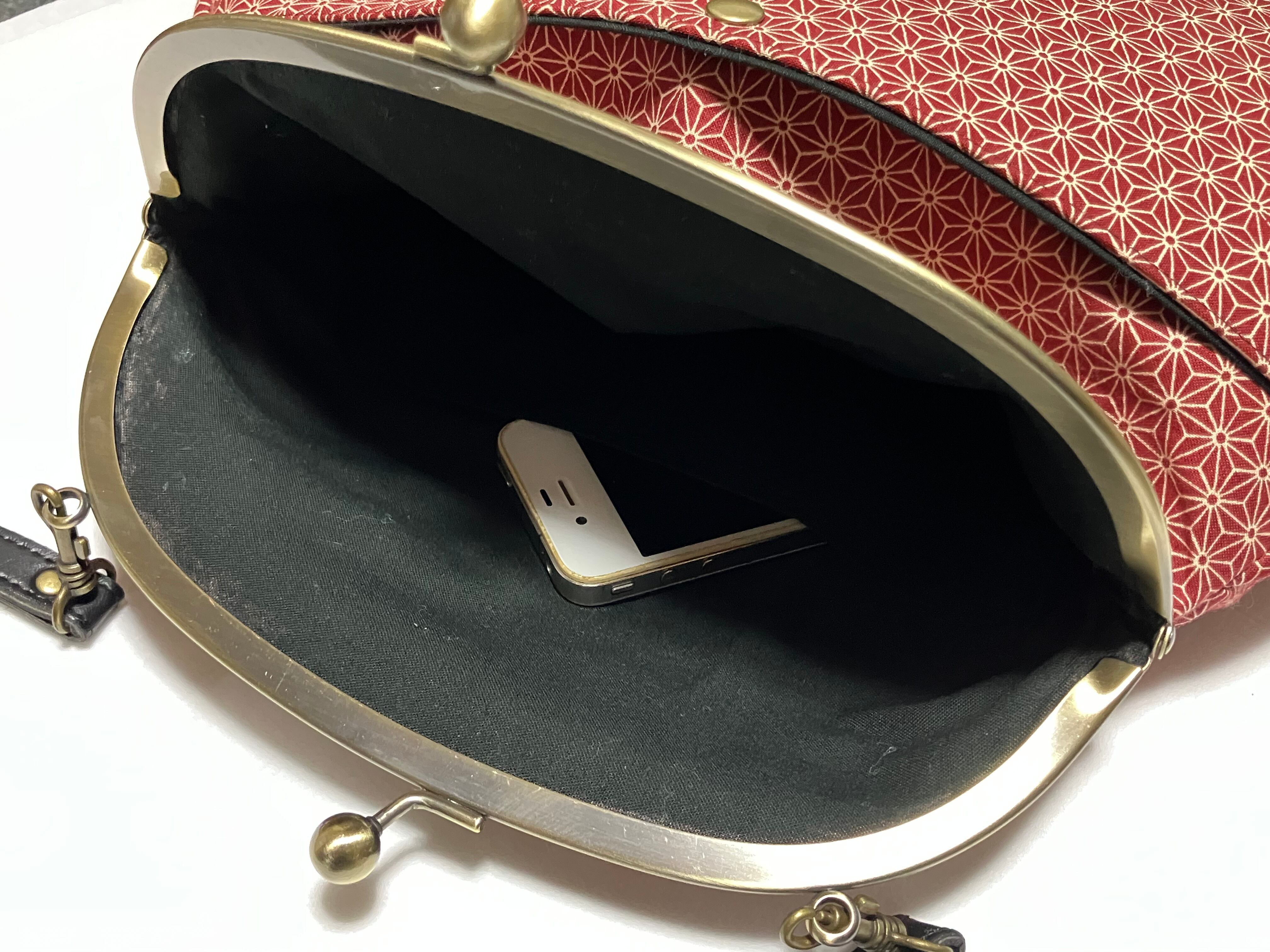 お着物にもピッタリのマチが付いてたくさん入る可愛いがま口バッグです