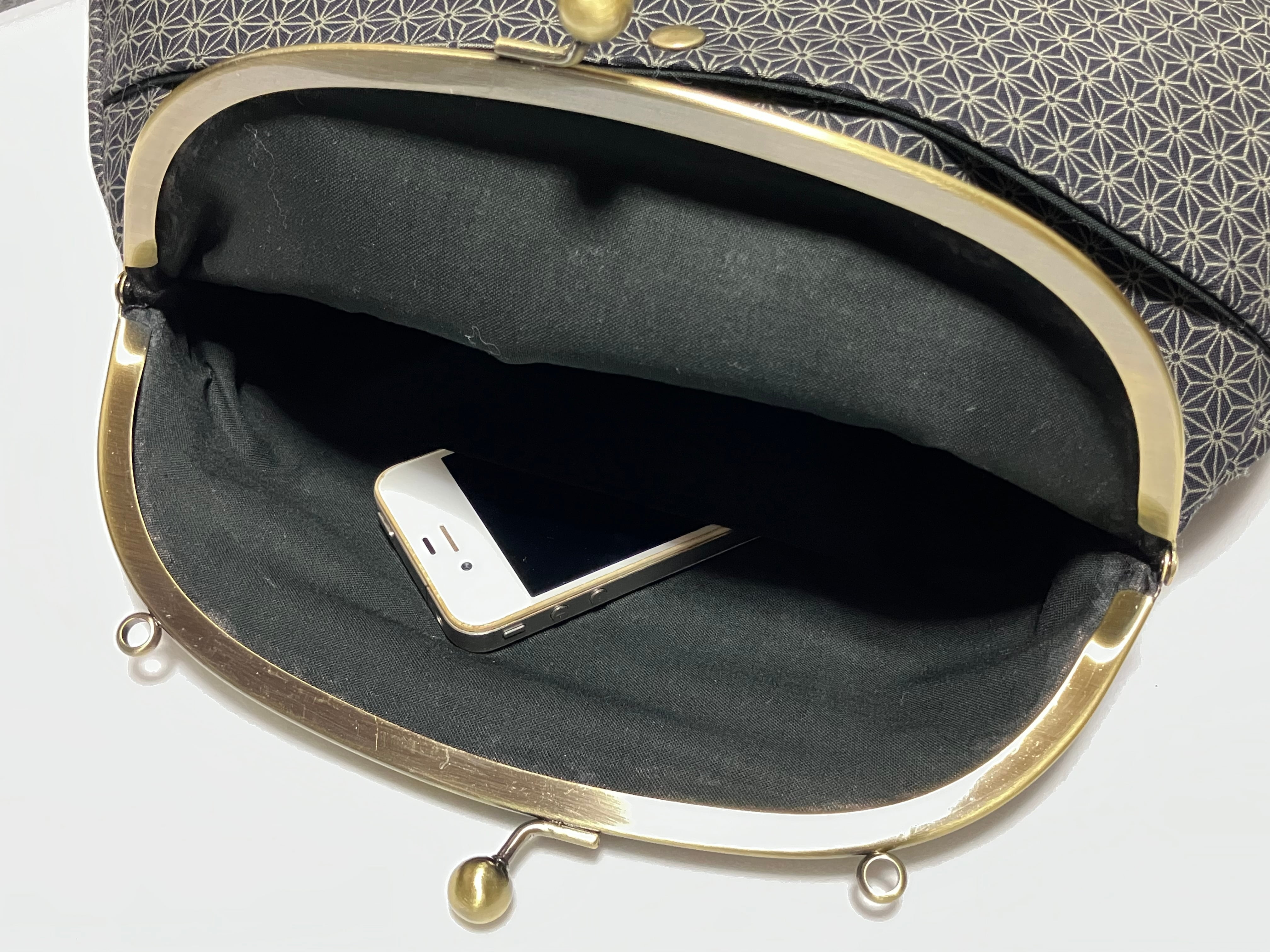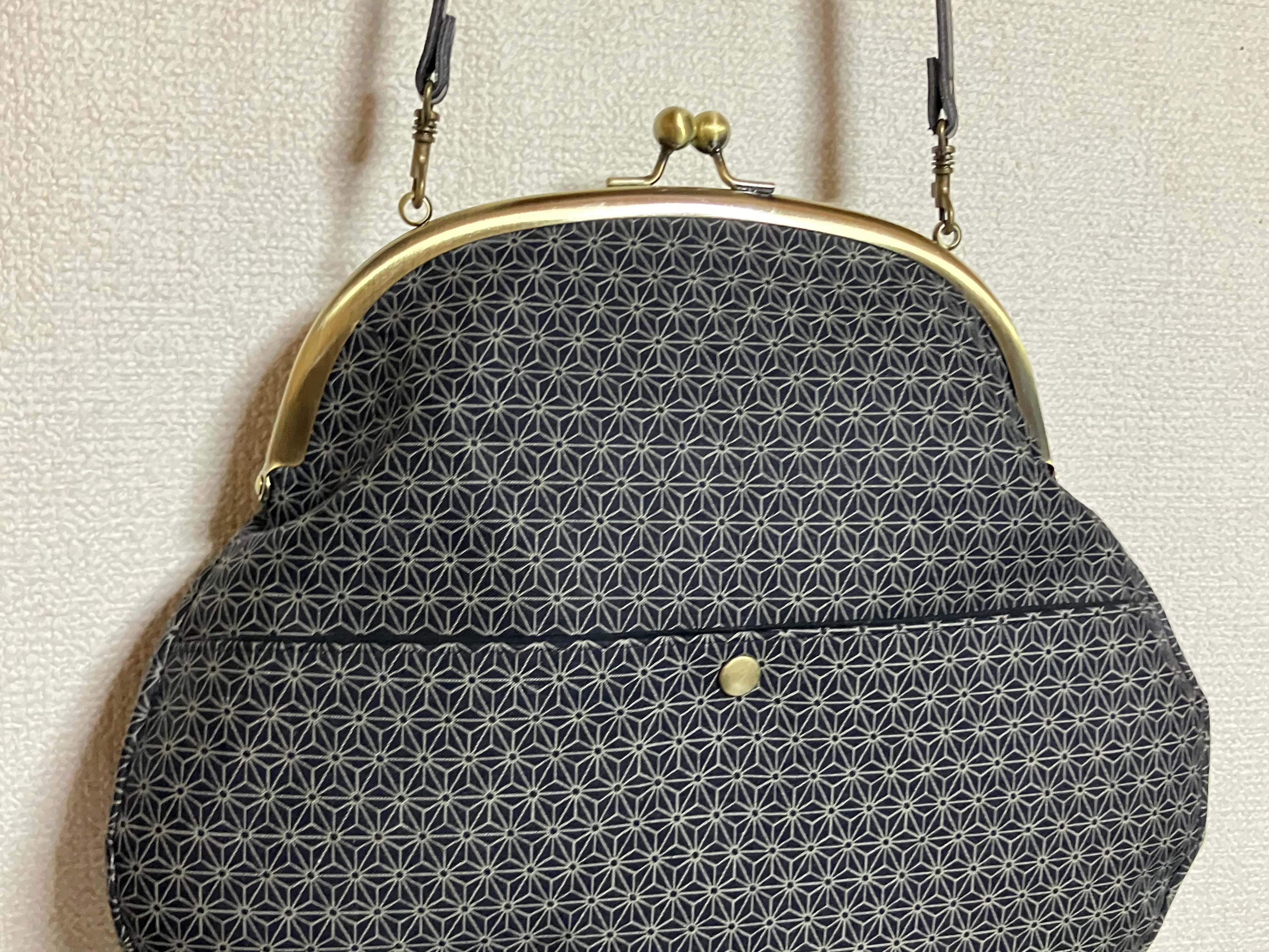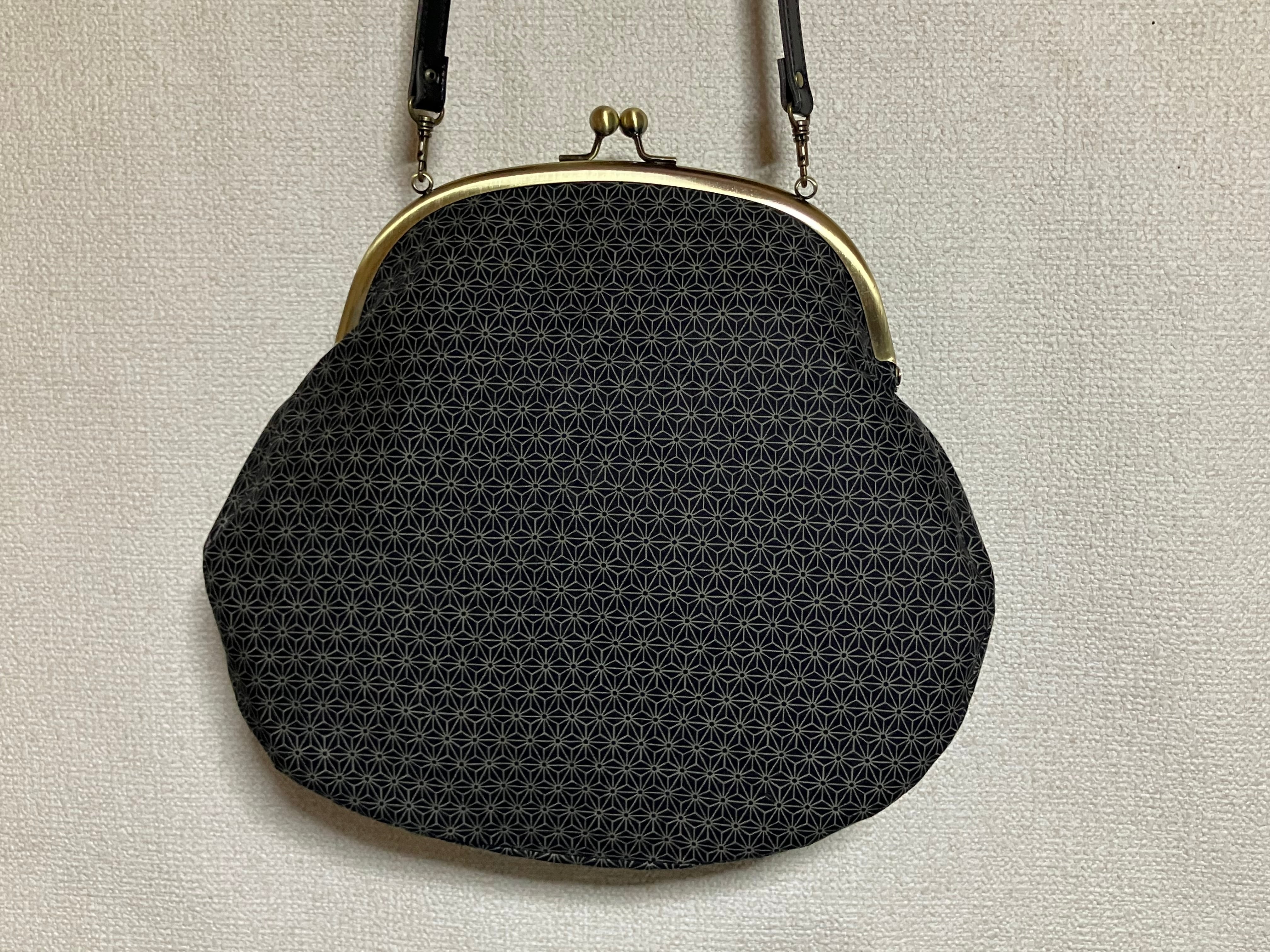がま口バッグ(麻の葉ブラック)