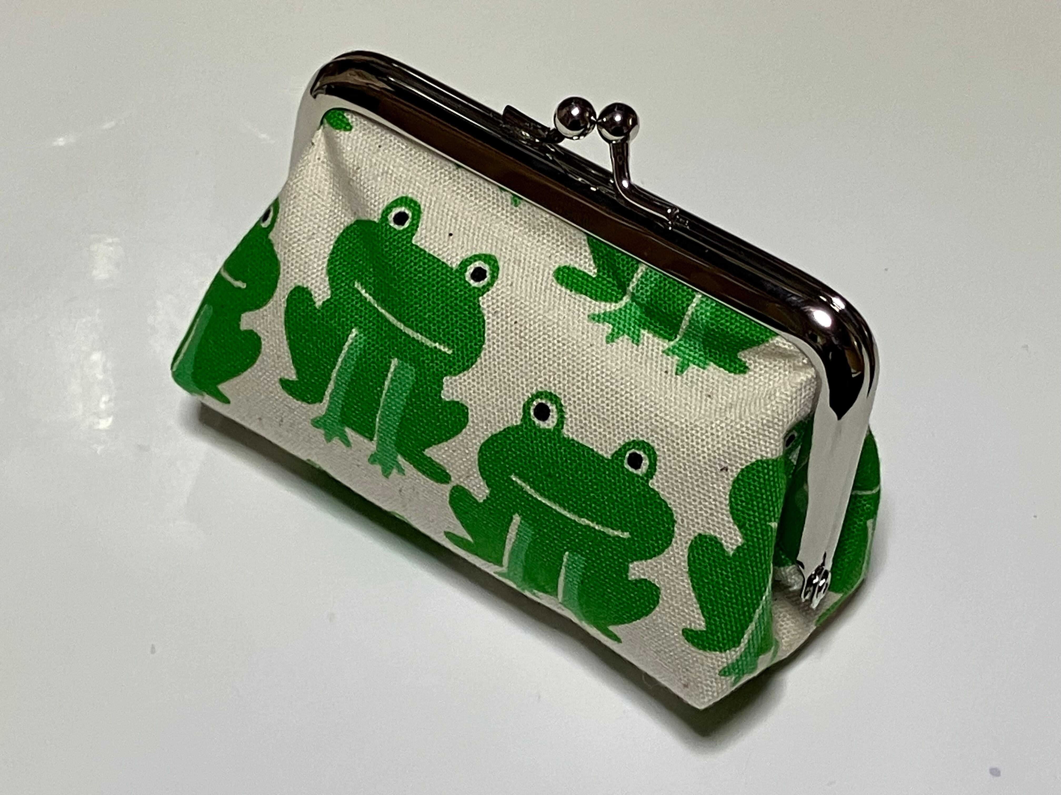 カードも入る便利で可愛いカタチのがま口ミニポーチです。