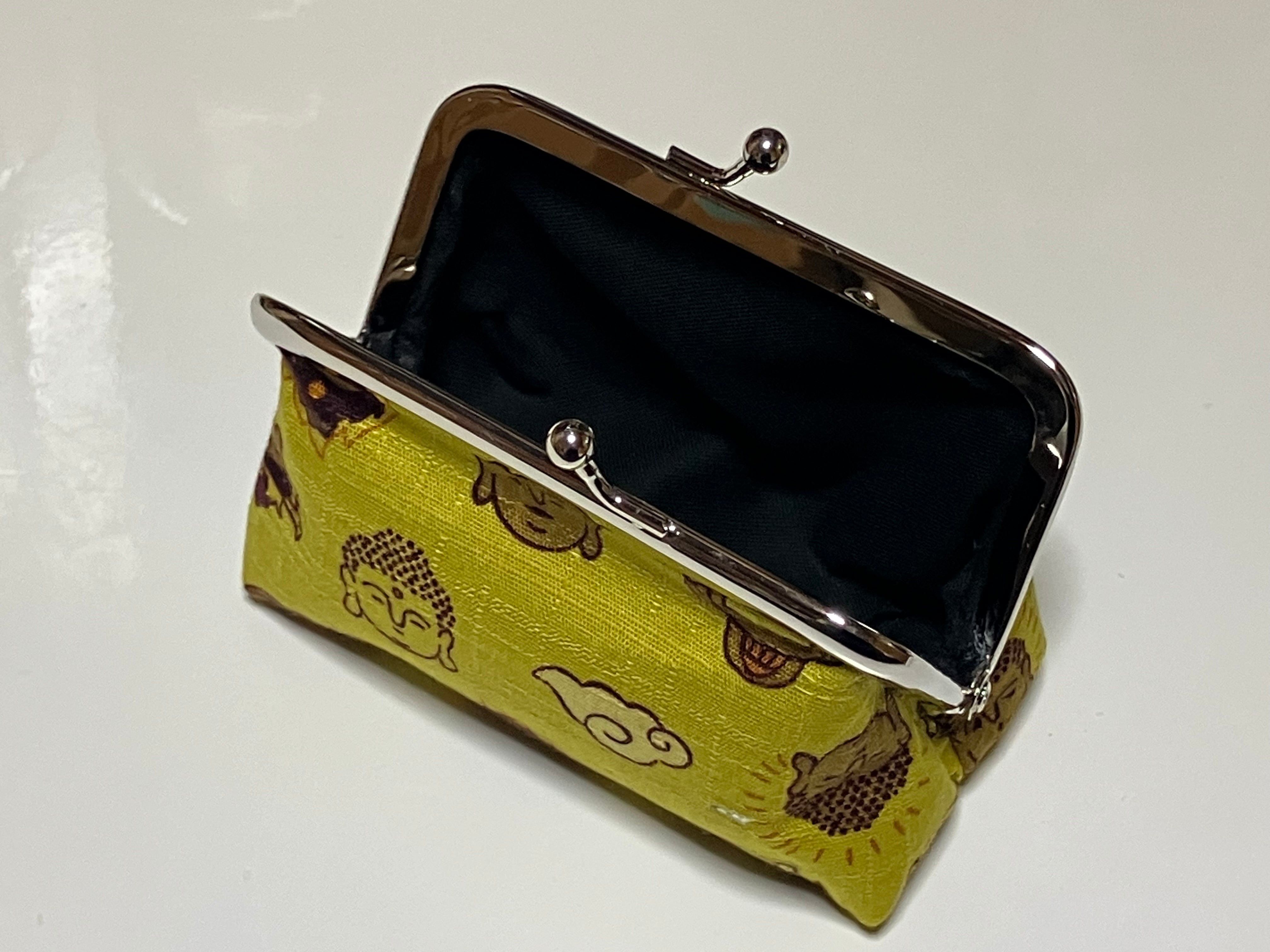 カードも入る便利で可愛いカタチのがま口ミニポーチです。