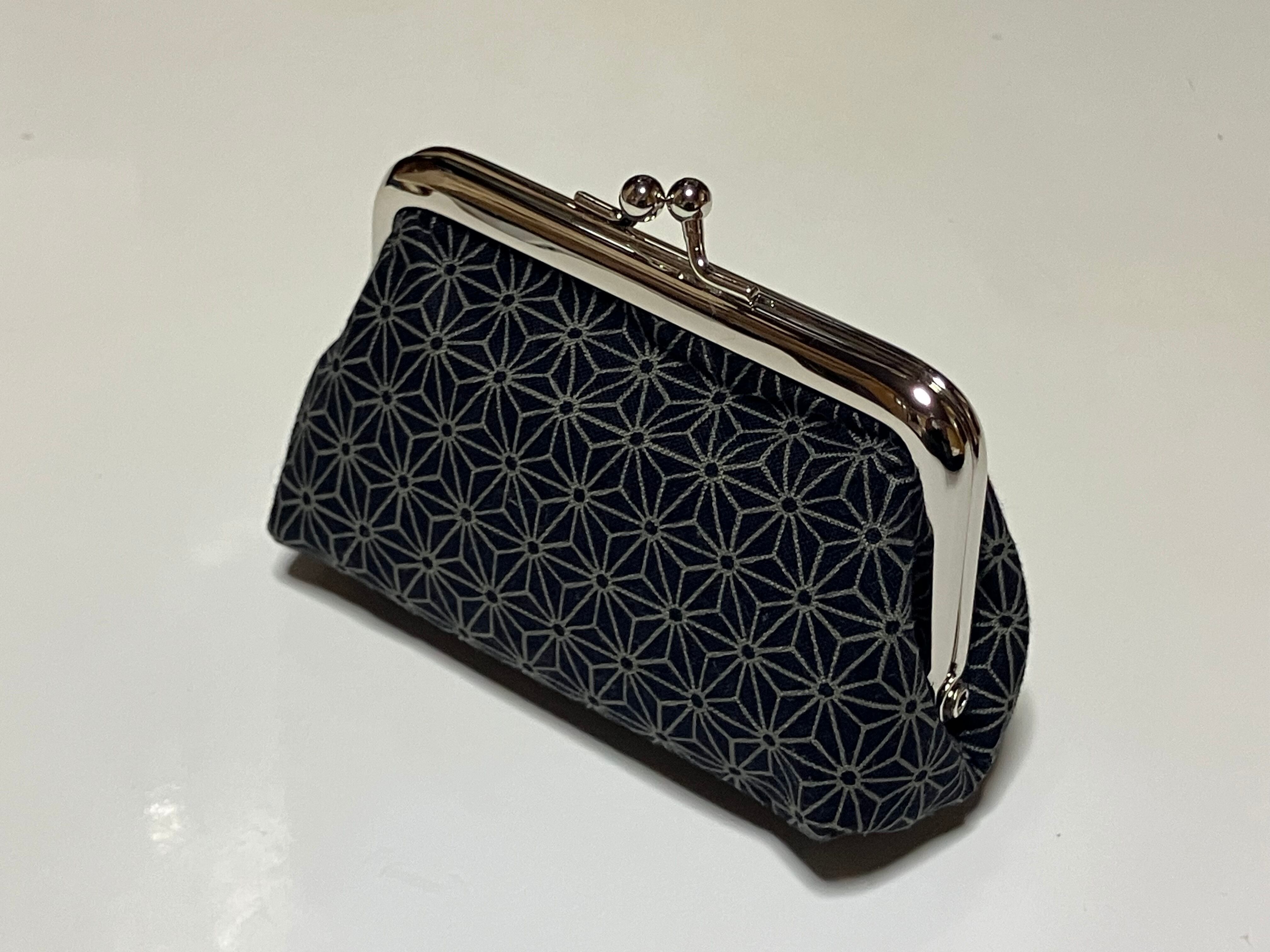 がま口ミニポーチ(麻の葉ブラック)